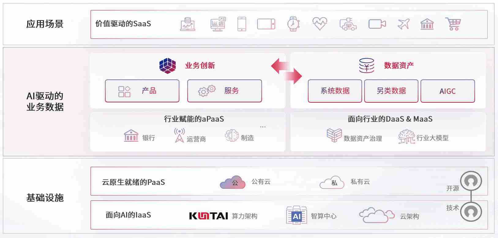 数字时代,,围绕企业数字化转型的关键要素,,bv伟德国际1946数码开创性的提出数云融合战略和技术体系框架,,,着力在云原生、、数字原生、、AI原生和信创产业上架构产品和服务能力,,,,为处在不同数字化转型阶段的快消零售、、、汽车、、金融、、、医疗、、、政企、、、、教育、、、运营商等行业客户提供泛在的敏捷IT能力和融合的数据驱动能力,,,构建跨界融合创新的数字业务场景和新业务模式,,,,助力企业级客户建立面向未来的核心能力和竞争优势,,全面推动社会的数字化、、智能化转型升级。。。。