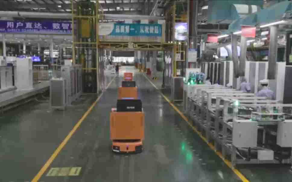 为车载冰箱物流配送打造的智能解决方案,,,,包含产中物流通过潜伏举升AMR搬运至线边,,产后成品物流智能仓储,,流程包含产中物流智能齐套入库,,,,线边安灯叫料AMR智能配送至线边,,,成品入库、、、出库,,,通过无人堆高车机器人,,,,智能仓储管理替代人工作业管理,,,实现更高存储、、、更高效率、、、更具柔性化的解决方案。。。。